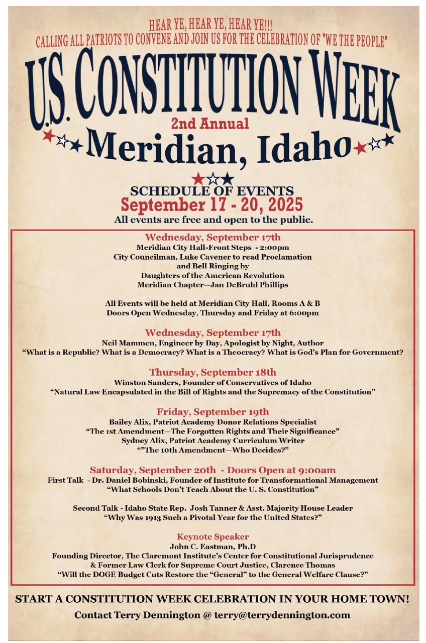 2nd Annual U.S. Constitution Week + Add to Google Calendar + iCal / Outlook export The event is finished. Date Sep 17 - 20 2025 Expired! Time All Day Category Partner Liberty Group Meetup Share this event
